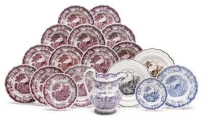 Group of Staffordshire transfer-printed "The Residence of the late Richard Jordan New Jersey" joseph heath & co., tunstall, 1829-1843