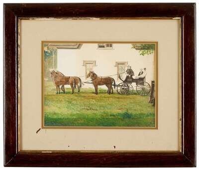 American School 19th century four horse drawn carriage before a philadelphia house