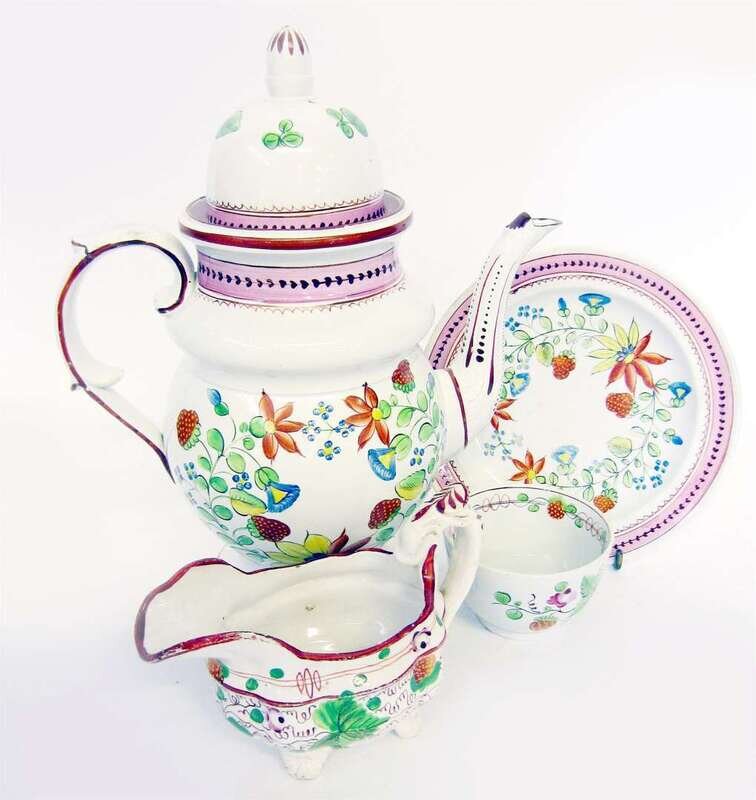 Staffordshire "strawberry" decorated pearlware items first half 19th century