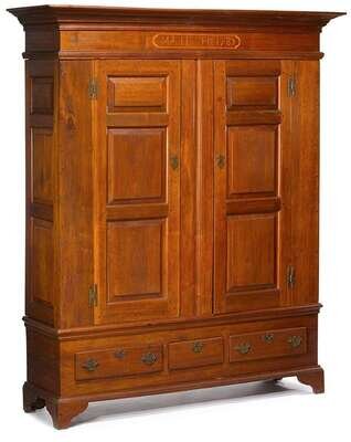 Chippendale inlaid walnut Schrank pennsylvania, dated "1785"