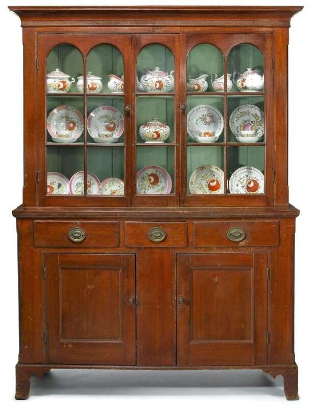 Red-stained stepback cupboard new jersey or pennsylvania, early 19th century