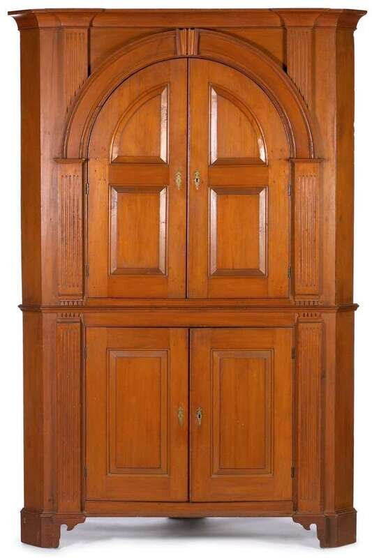 Large pine architectural corner cabinet pennsylvania, 18th century