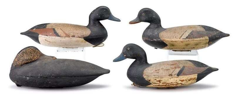 Four painted and hollow carved working decoys attributed to john blair, sr. (1842-1928 ), philadelphia, pa, late 19th/early 20th c