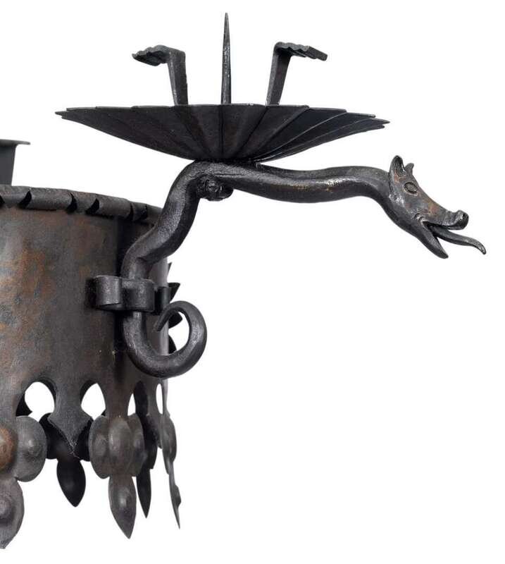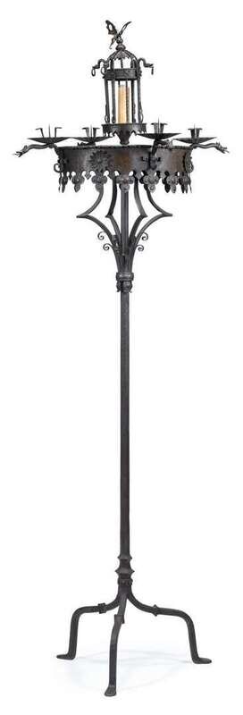 Impressive wrought iron floor candelabrum in the manner of samuel yellin (1885-1940), first half 20th century