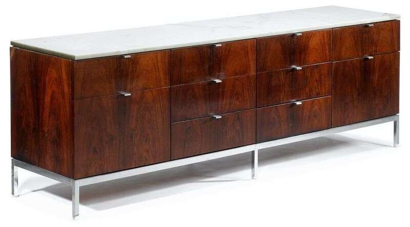 Rosewood, chromed steel and white marble credenza florence knoll for knoll, east greenville, pa, second half 20th century