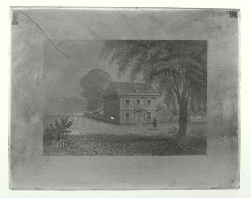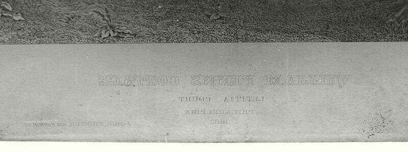 Original Steel Plate. Quig, J. "William Penn's Cottage. Letitia Court, Philadelphia. 1682." [Philadelphia]: 623 Sanson St. Image size 6 7/8 x 9 11/16 in; 175 x 245mm - complete metal plate 11 x 14 in; 280 x 355mm. Lightly to moderately scuffed. In its 3rd & final state, 1870.