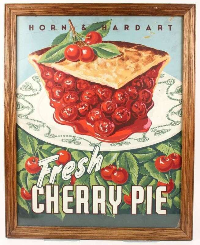 Color Lithographic Poster. Horn & Hardart. "Fresh Cherry Pie." [Philadelphia?, ca 1940-1960.] Approx 27 1/2 x 21 1/2 in; 700 x 545 mm. Occasional, mostly minor surface wear. Bold & bright. In period frame. Condition B+.