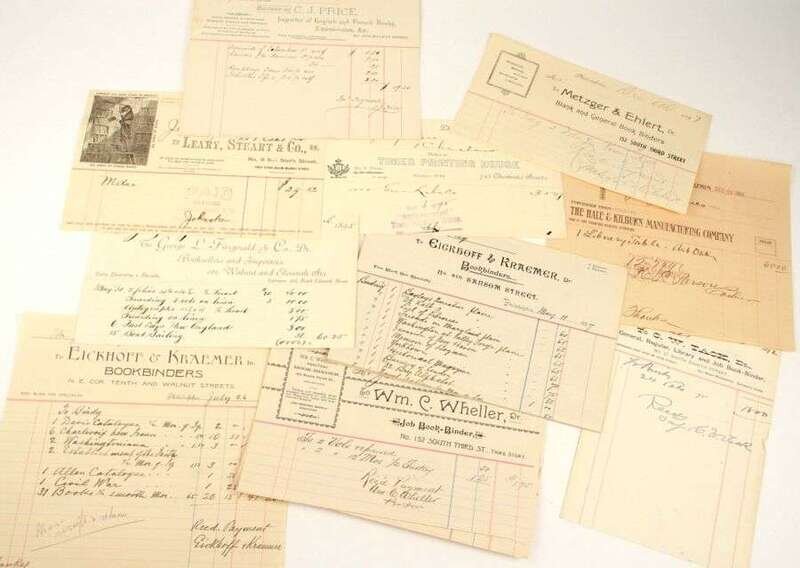Booktrade & Bookseller's Bills of Sale - American & British: Most 1890s, many Philadelphia businesses & buyers. Approx 180 pieces.
