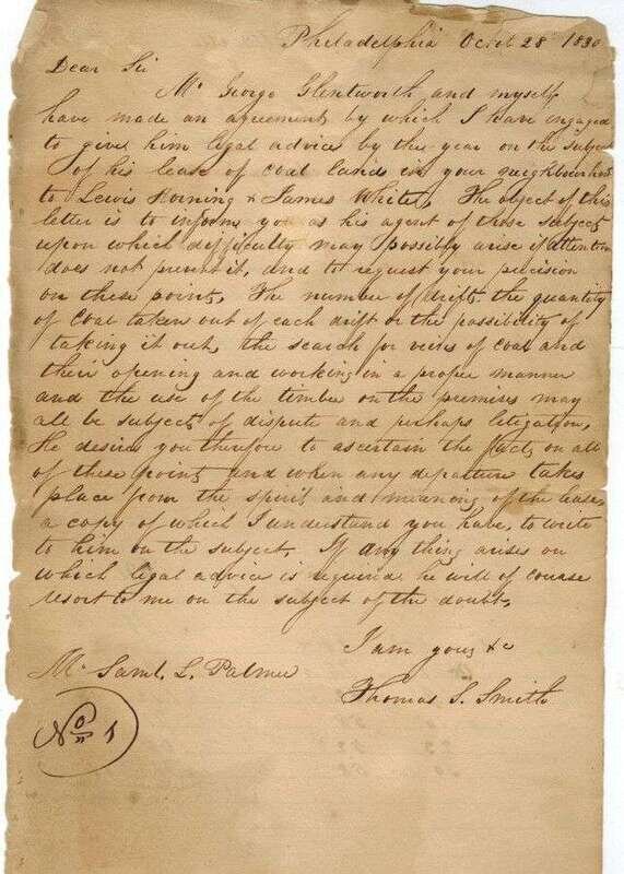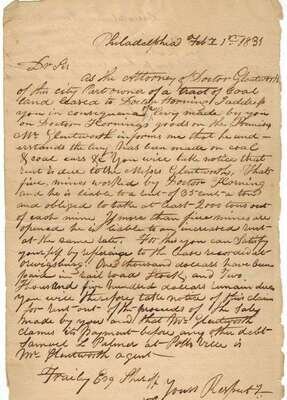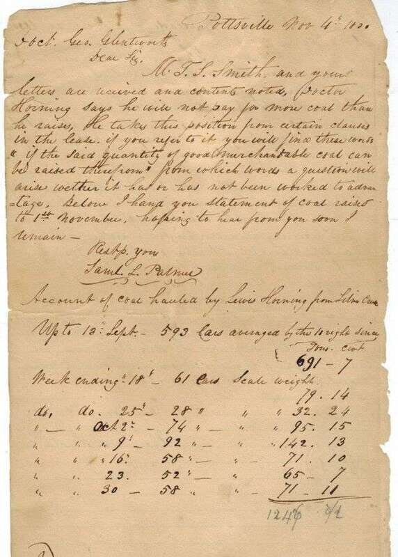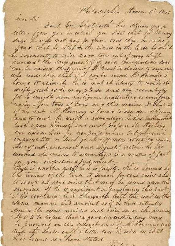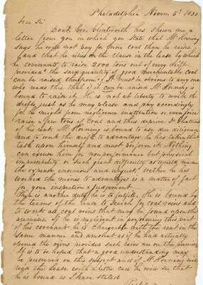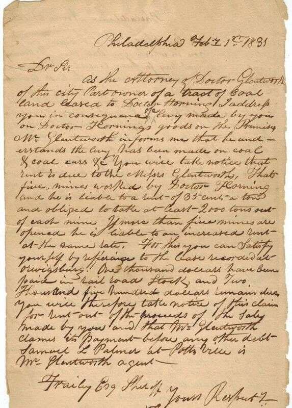 Manuscript Material - Business Letters & Documents Relating to the Early Coal Industry in Pennsylvania. 14 folio sheets. Philadelphia & Pottsville, 1830 & 1831.