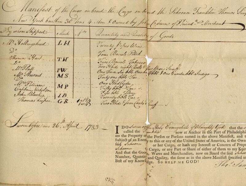 Philadelphia Manuscript & Partly Printed Documents - Ca 1780-1801 - Including Ship Manifests. Approx 15 pieces. Sold as is.