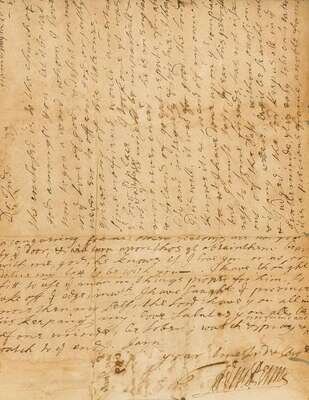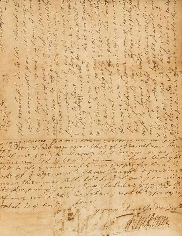 Autograph Letter Signed. Penn, William. Hammersmith (London), 30th, 10mo, 1689. 2pp, 4to; moderate creasing & light toning, small chip just touching a few words. To "Thos. Lloyd, Jo. Simcock, Thos. Janney, Robt. Turner, John Eccle, Ar. Cook, Saml. Richardson, Saml. Carpenter or any of three of them." Relating to the appointment of a Deputy Governor for Pennsylvania. Signed twice, at closing & address. Signature clear.