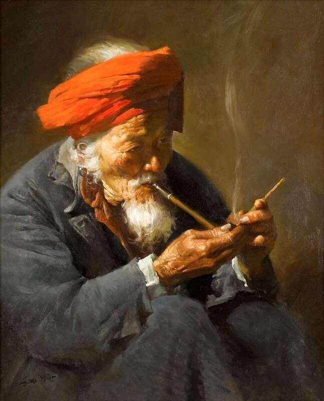 MIAN SITU (CHINESE B. 1953) MAN SMOKING PIPE
