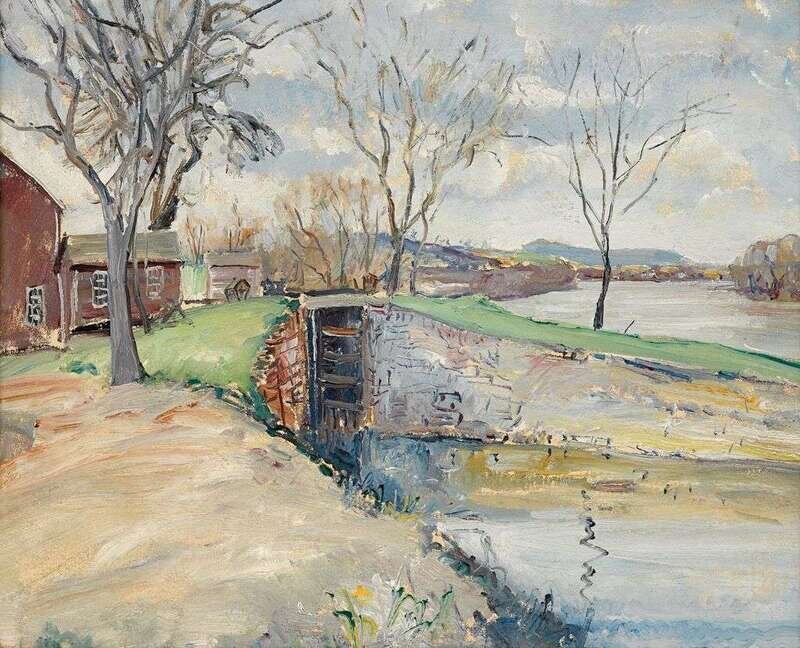 WALTER EMERSON BAUM (AMERICAN 1884-1956) "LOCK ALONG THE DELAWARE"