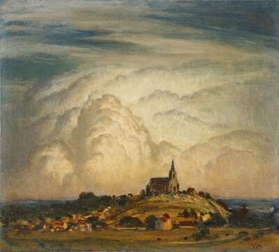 GEORGE WILLIAM SOTTER (AMERICAN 1879-1953) CLOUDS BILLOWING OVER A CHURCH