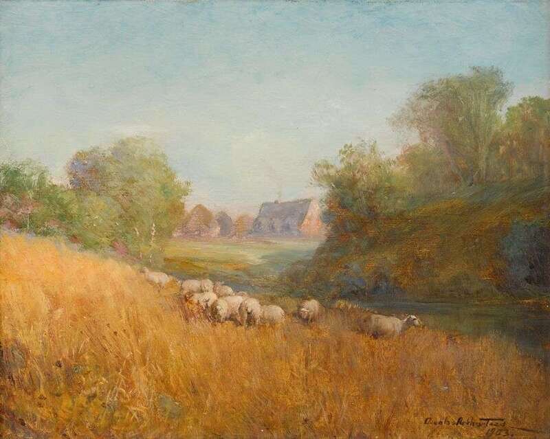 DOUGLAS ARTHUR TEED (AMERICAN 1863-1929) SHEEP GRAZING