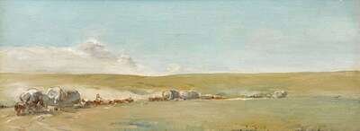 WALTER SHIRLAW (AMERICAN 1838-1909) "COVERED WAGONS"