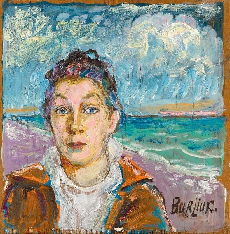 DAVID DAVIDOVICH BURLIUK (AMERICAN/UKRAINIAN 1882-1967) PORTRAIT AT THE BEACH