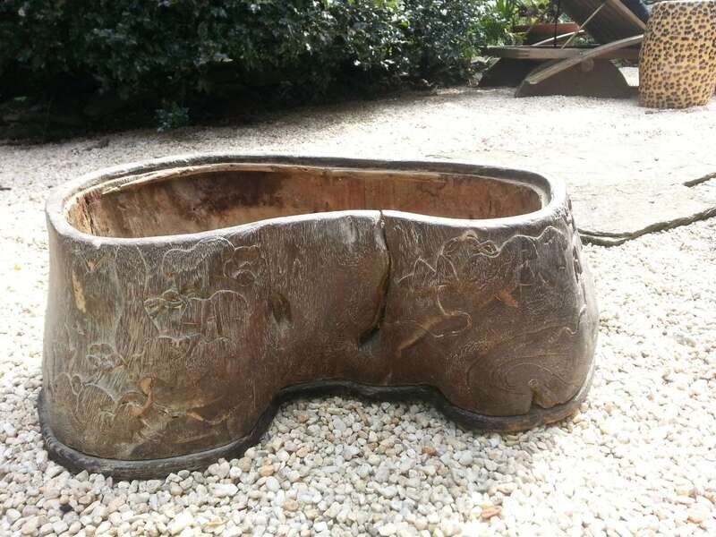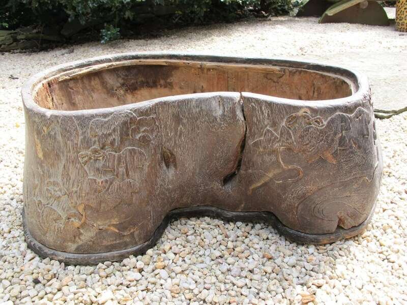 Japanese carved wood hibachi