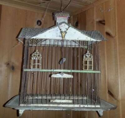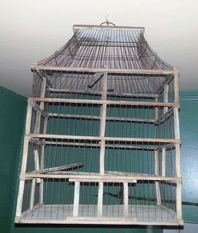 Two wood and wire bird cages
