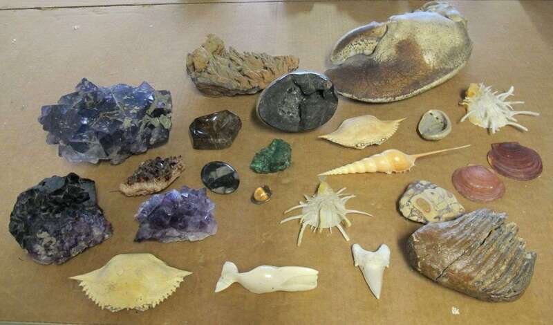 Including mineral clusters, carved ivory whale, shark's tooth, claw, shells, etc. (23).
