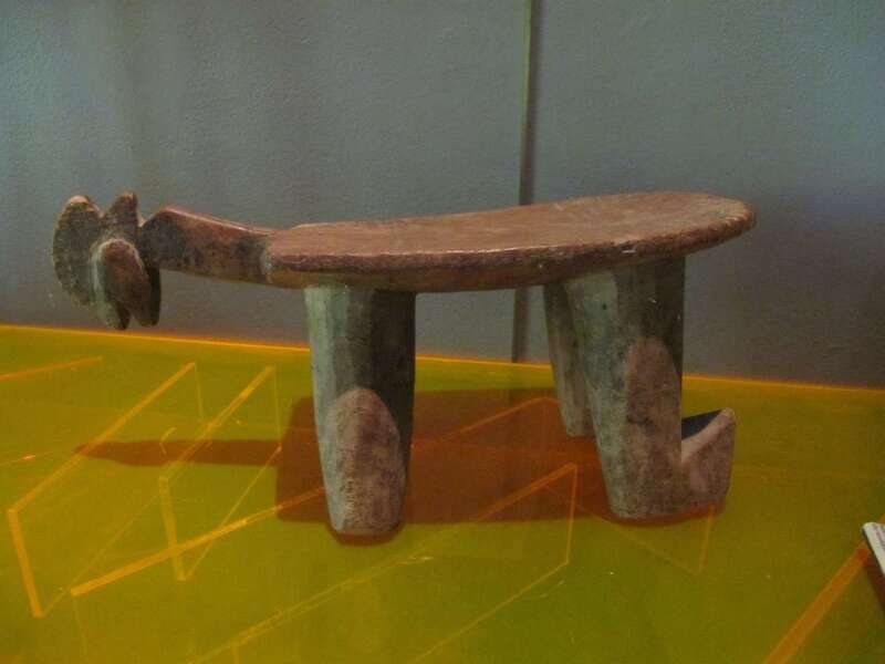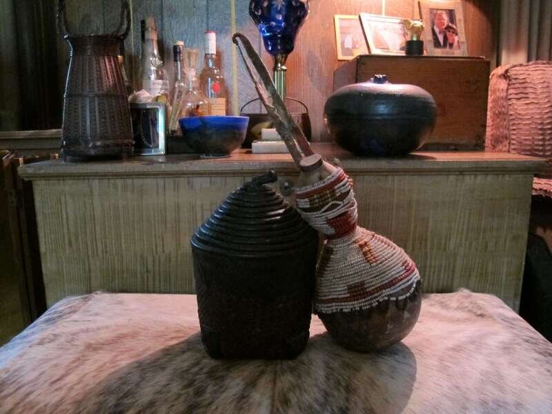 Including a Zoomorphic stool from Burkina Faso, a group of wedding nesting baskets and a beaded and carved gourd. (3).
