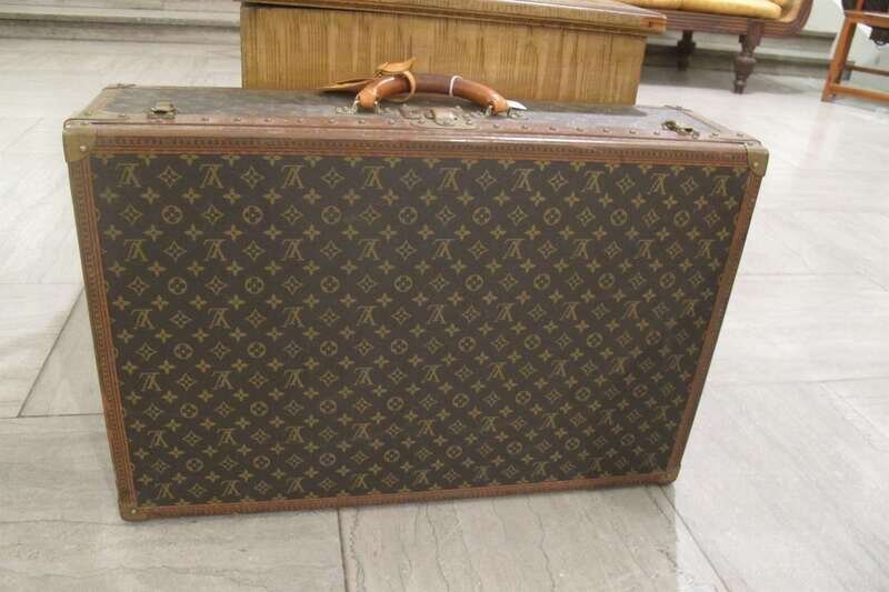 Monogramed printed canvas and leather trim, the lock stamped 1031575 Louis Vuittton Made in Paris, the interior metal label stamped 991373.