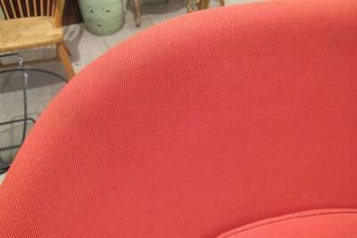 Upholstery, chromed steel, Knoll Inc. label to underside of seat.