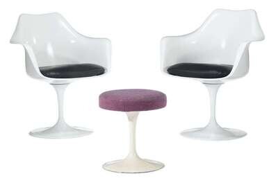 Eero Saarinen, Pair of Tulip armchairs and stool knoll international, 1970s/2000s
