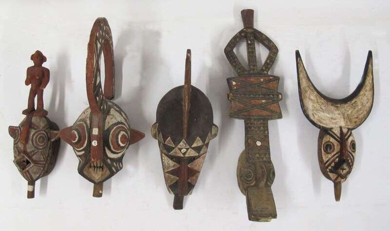 Collection of five face masks attributed to nuna, nunuma and winiama, burkina faso