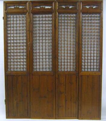 Chinese six panel softwood lattice carved floor screen