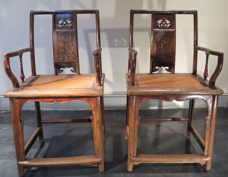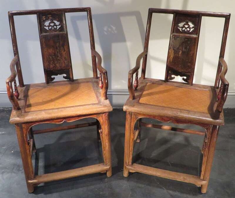 Pair of Chinese softwood armchairs qing dynasty