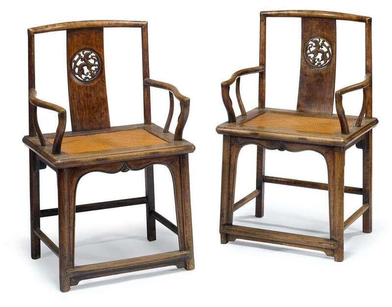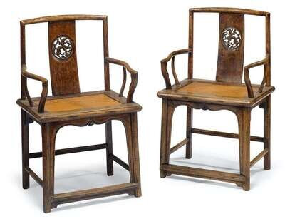 Pair of Chinese hardwood southern official's hat armchairs qing dynasty