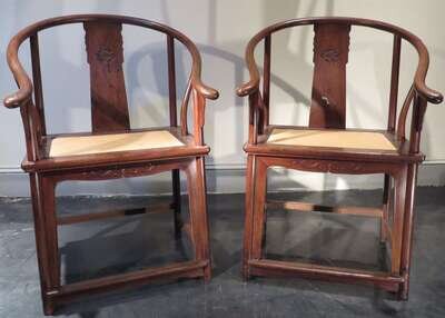Pair of Chinese hardwood horseshoe back chairs qing dynasty