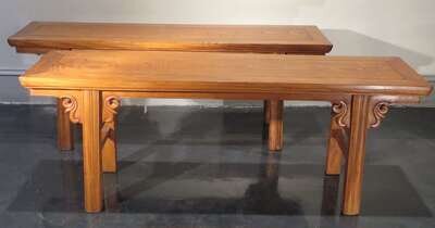 Tiaodeng with legs of melon section joined by double stretchers and a beaded apron with foliate-form spandrels.