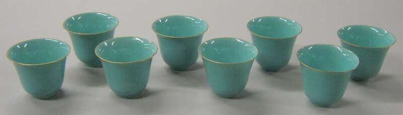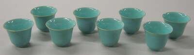 Eight turqoise glazed gilt rim wine cups qing dynasty