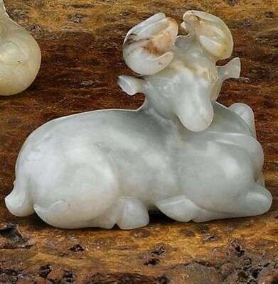 Chinese celadon jade ram carving