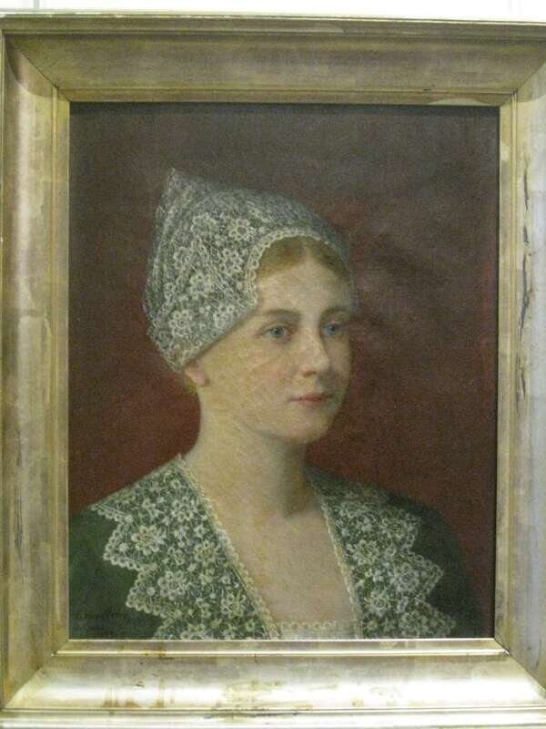 ENOCH WOOD PERRY (AMERICAN 1831-1905) BUST OF A WOMAN IN GREEN WITH LACE HAT