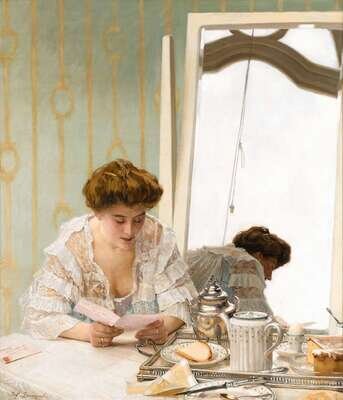 JOSEPH (JEF) LEEMPOELS (BELGIAN 1867-1935) "A MORNING MISSIVE"