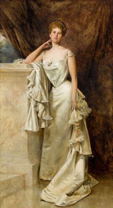 CONTINENTAL SCHOOL (19TH CENTURY) FULL LENGTH PORTRAIT OF A LADY IN A GOWN