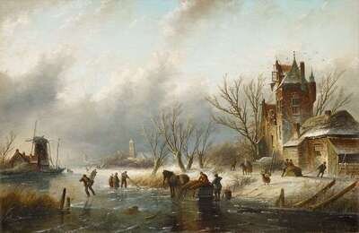 JAN JACOB COENRAAD SPOHLER (DUTCH 1837-1923) WINTER SKATING SCENE
