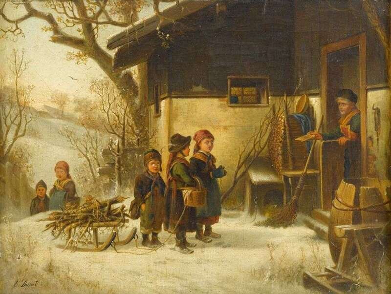 E. DUCAT (CONTINENTAL 19TH CENTURY) CHILDREN IN SNOW