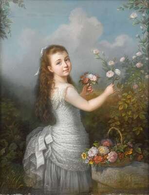 ERNEST DE LANDERSET (FRENCH 1832-1907) GATHERING FLOWERS