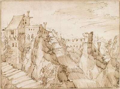 TOBIAS VERHAECHT (FLEMISH 1561-1631) FORTRESS IN A MOUNTAINOUS LANDSCAPE