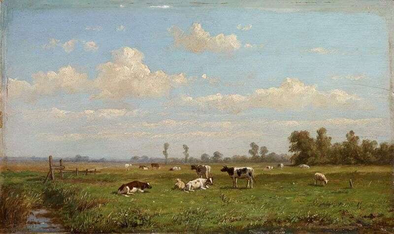 ANTHONIE JACOBUS VAN WIJNGAERDT (DUTCH 1808-1887) COWS IN A MEADOW