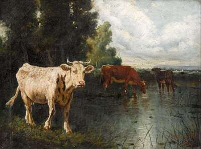 MARIE DIETERLE (FRENCH 1856-1935) COWS WATERING