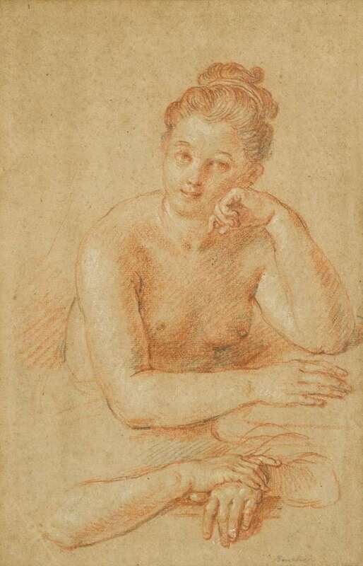Attributed to Charles-Antoine Coypel (French, 1694-1752) La Rêveuse, with Study of Folded Hands