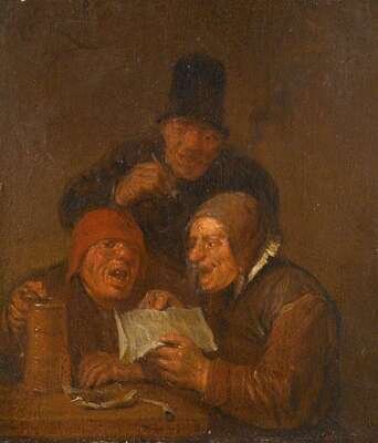EGBERT VAN HEEMSKERCK THE ELDER (DUTCH 1634-1704) THREE MEN IN AN INTERIOR