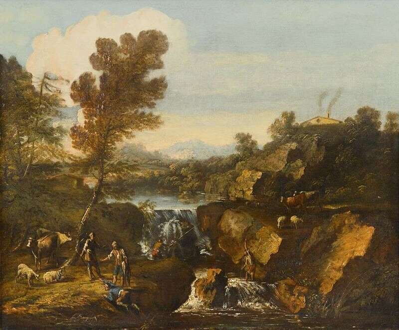 ITALIAN SCHOOL (17TH-18TH CENTURY) FIGURES IN AN EXTENSIVE LANDSCAPE