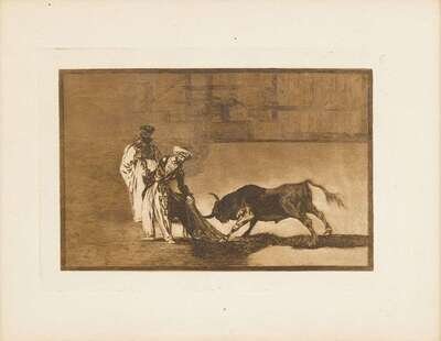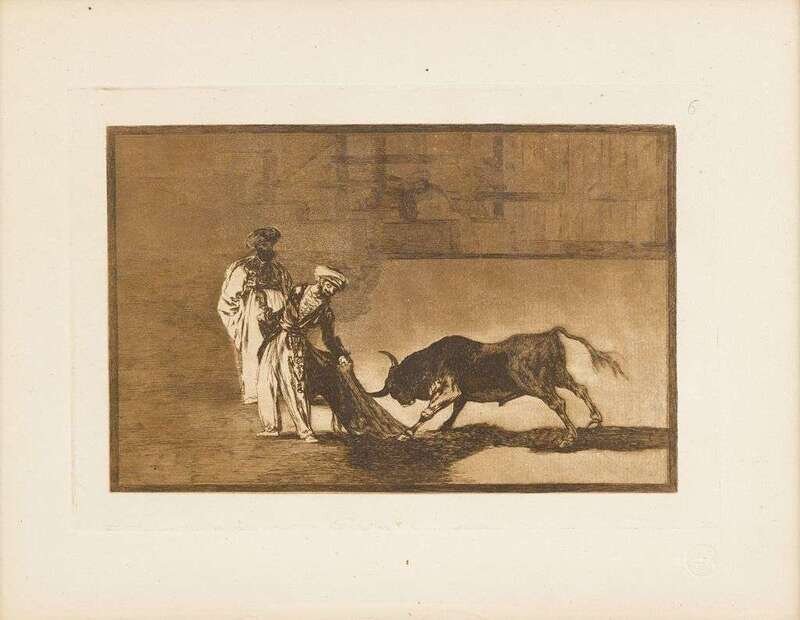 "Los Moros hacen otro Capeo en Plaza con su Albornoz," from La Tauromachie, plate 6 [Delteil 229]