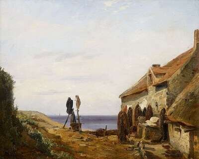 JULES DUPRÉ (FRENCH 1811-1889) COTTAGE BY THE SEA